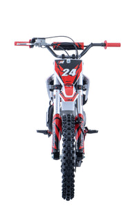 Trailmaster TM24 Dirt Bike 124cc, New for 2024, 17 Inch Front Tire, Electric Start, 32.7 Inch seat height Semi Automatic, 4 speed Trailmaster Motobuys is very excited to introduce Trailmaster's new line of pit/dirt bikes. With over 30 years of experience in the power sports industry, we have never been more impressed by a new line of dirt bikes. The TrailMaster dirt bike offers a superior frame design, improved suspension, and the industry's longest 12-month/12,000-mile warranty on engine and transmission. The TM24 features an electric start and kick-start backup. The suspension has dual inverted front forks and a mono-shock rear-end suspension.  Only the highest quality engine components are used in the air-cooled engine. Semi-automatic transmission teaches young riders to use the gears to accelerate and bring the bike to a safe stop.  The brakes are front and rear disc brakes with 210mm rear and 190mm front single piston hydraulic systems.  Trailmaster has a proven track record for over two decades providing outstanding service to all of our customers.  The engineers at Trailamaster have been working on these bikes for three years to get them to the market. They are here are they were worth the wait.  Assembly available for an additional fee.  10/29/2024 BL Main Features:• Powerful 124cc engine• Electric and kick Star • Large tires with 17” front and 14” back• Inverted front shock• 42’3 “ wheelbase and 32.7” seat high• Hydraulic front and rear disc brakes• Aluminum handlebar  CA customers: this item is NOT CARB-approved, but you may use it on your private land. Tech Specs Engine System Engine Type ZM125cc, Single Cylinder, 4-Stroke, Air Cooled Displacement 124 ml Max Power 6.2(1±10%)/7000(1±5%) kw/r/min Max Torque 9.0(1±10%)/5000(1±5%) N.m/r/min Compression Ratio 9.6:1 Shift Type N-1-2-3-4, Four-Gear, Automatic clutch Start Type Kick Start & Electric Start Ignition CDI Transmission Chain Drive; #428,14/41T Size Data L x W x H 64.2"X29.5"X41.5" Wheel Base 42.3" Tires FT: 70/100-17 - RR: 90/100-14 Seat Height 32.7" Ground Clearance 13.6" Fuel Capacity 3.5 L Min. Fuel Consumption: ≤367g/kw.h Max Range: ≤10.5mile Engine Oil #: SJ5W一30 Frame/Suspension/Brake/Wheel system Frame Cradle Type Steel Tube Frame Front Fork Inverted 45*48-700mm Forks, Non-Adjustable Rear Shock 10*275mm , Non-Adjustable Swing-Arm Steel Tube Handle Bar Aluminium Crossbar ,L=720mm; Dia=22mm Wheels Steel 1.6 x 17" / 1.85 x 14" Rims, Cast Hubs Front Brake Hydraulic Single Piston Caliper, 210mm Disc Rear Brake Hydraulic Single Piston Caliper, 190mm Disc Exhaust Stainless Steel Header Pipe, Hexagon Aluminum Silencer Packing and Loading Packing Size 54.5"X14.8"X29.7" N.W/LBS 134.5 LBS G.W/LBS 161 LBS     Warranty Our Company Warranty PoliciesYour satisfaction is our #1 goal. We strive to provide our customers with the highest level of customer service and support we can. We strongly suggest our customers read the following information thoroughly. If you have any questions about any of our or the manufacturers policies, please feel free to email us or call 1-877-667-6289.If you need parts at the bottom of our home page you will find “Parts Request or https://motobuys.com/pages/part-request = simply fill out the form and click submit.For Tech Support: https://motobuys.com/pages/technical-supports simply fill out the form and click submitTHE MANUFACTURERS WARRANTY COVERS PARTS, ENGINE ONLY FOR ALL PRODUCTS AS FOLLOWS:OFF ROAD: ATV'S, UTV'S, BUGGIES, GO CARTS AND DIRT BIKES offer 3 MONTHS PARTS, 6 MONTHS ENGINE WARRANTY, MOTOBUYS.com will supply new or rebuilt replacement parts in exchange for defective parts for a period of 3(three) months, as well defective engines for a period of 6(six) months from the date of purchase at no charge.Buyers will need basic repair & basic setup skills such as using tools; replacing nuts & bolts, filters, light bulbs, fluids, adjustments, etc. If you don’t have this ability we suggest using a mechanic to assist you with your needs. Our tech support Hotline is available to assist you.THIS LIMITED WARRANTY COVERS THE FOLLOWING PARTS ONLY:ENGINE: All internal lubricated parts, i.e. Pistons, piston rings, piston pins, connecting rods, rod bearings, camshaft, camshaft bearings, timing chain, crankshaft, crankshaft main bearings, oil pump, water pump, valves, valve springs, valve guides, valve seats, valve lifters and valve push rods. Additionally, the engine head and cylinder will only be covered if damage is caused solely as a result of the mechanical failure of one or more internal lubricated components listed above. (Broken gears any damage from outside impacted is not covered warranty)ENGINE CASE: The Engine case itself will only be covered if the damage caused was solely as a result of the mechanical failure of one or more of the internal lubricated components listed above. (Broken gears any damage from outside impact is not covered warranty)DRIVE SYSTEM: All internal lubricated parts contained within the drive axle housing case, i.e. differential, differential gears, drive shaft, drive axles, CV joints, axle bearings, reverse gears and output shafts. The drive axle housing as well as the reverse gearbox housing, if damaged solely as a result of the mechanical failure of one or more or the internal lubricated components contained the drive axle housing will be covered. (Any bent, broken, or damage by outside impact is not covered warranty)FUEL SYSTEM: For carburated vehicles; Carburetor, vacuum fuel pump, intake manifold, fuel tank and fuel petcock. For fuel injected vehicles; Fuel injectors, fuel pump, fuel rail and fuel pressure regulator.ELECTRICAL: Stator, stator pickup, magneto, voltage regulator\ rectifier, CDI, starter relay\ starter solenoid, starter motor, coil, distributor assembly and injector relay.COOLING SYSTEM: Radiator, radiator cap, thermostat, thermostat housing, temperature indicator switch, cooling fan motors; water pump and