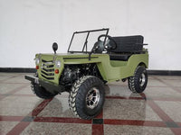Awesome Mini-Jeep-style Willy's Go Kart is really a great off-road vehicle for kids of all ages. The electric start, keyed ignition, semi-automatic transmission, 4-Stroke engine, and rack and pinion steering make this go-cart extremely easy and fun for kids to operate.