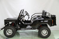 125cc Mini Jeep has a Honda clone designed overhead cam gas engine, single independent front & rear disc brakes,