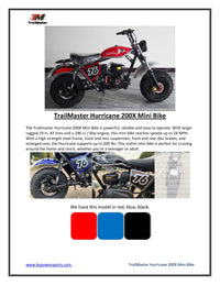 The upgraded Trailmaster Mini Bike MB 200X Hurricane is our most rugged and popular off-road mini bike – ready to take you anywhere!