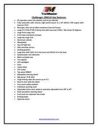 Alloy rims, aggressive off-road tires, and coil-over shocks come standard. Simply put the best light-duty UTV available on the market, Backed 100% by Tralmaster for all your parts needs.
