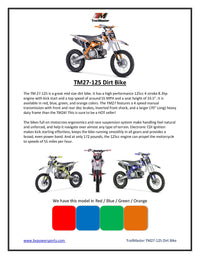 The TM-27 125cc 4-speed manual trans gives more serious riders a powerful bike to push their limits!