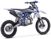 This all-new dirt bike brings together design features found on bikes that cost five times as much. This is the first true dirt bike from TM. Longer frames and extended suspensions give the bike more suspension for the ruts and rougher terrain than pit bikes do not handle very well.